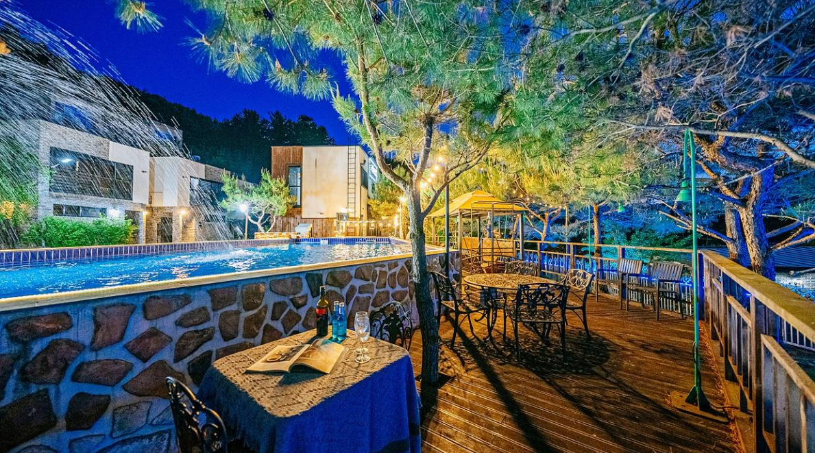 - 특징: 독채형 빌라와 호텔형 풀빌라를 선택할 수 있으며, 야외 대형 수영장과 자쿠지를 갖춘 고급 숙소입니다.