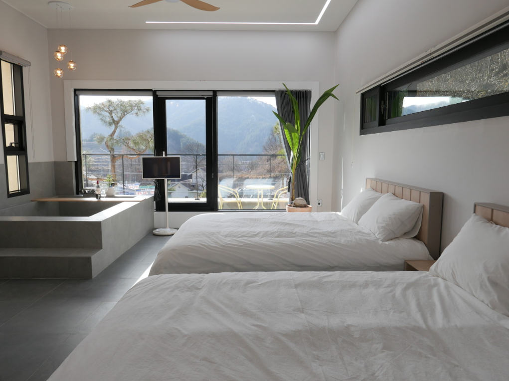 - 특징: 감각적인 인테리어와 개별 자쿠지가 돋보이는 힐링 스테이입니다.